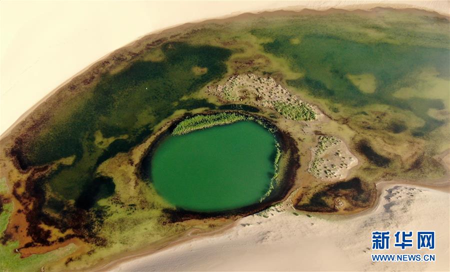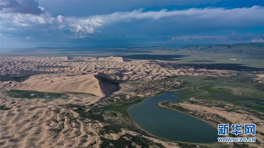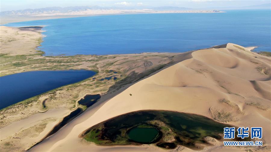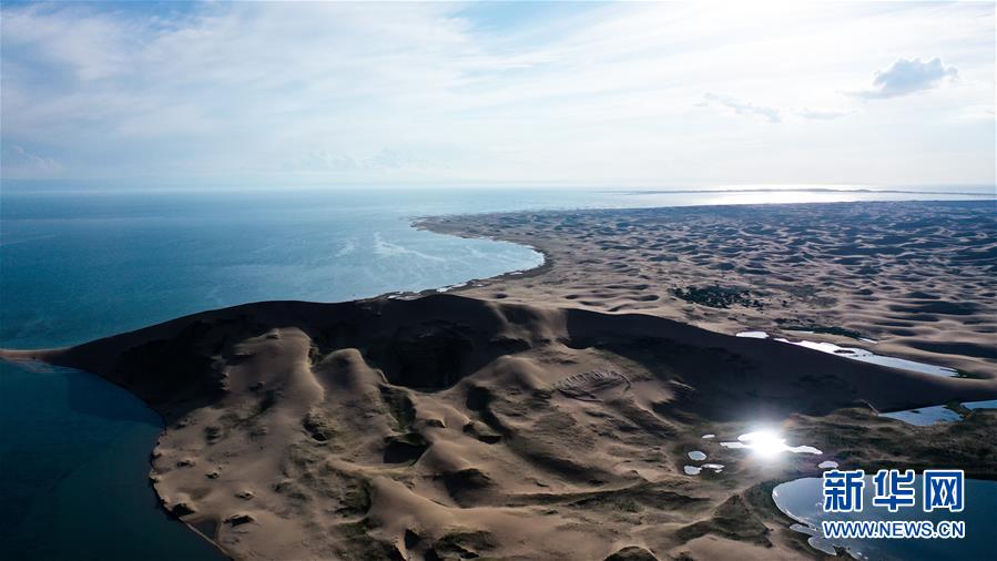 這是7月28日拍攝的青海湖沙島一隅(無(wú)人機(jī)照片)。 盛夏傍晚,位于青海湖東北部的沙島,島內(nèi)湖泊星羅棋布,沙丘連綿起伏,風(fēng)景別致。金沙與湖水掩映,在陽(yáng)光的勾勒下形成一幅美麗的畫(huà)卷。 新華社記者 吳剛攝