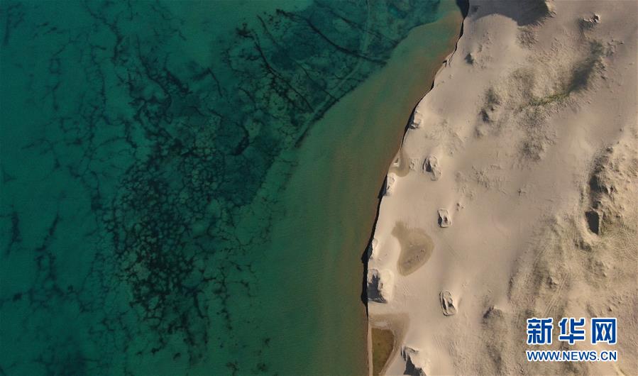 這是青海湖沙島一角(7月28日攝,無(wú)人機(jī)照片)。 盛夏傍晚,位于青海湖東北部的沙島,島內(nèi)湖泊星羅棋布,沙丘連綿起伏,風(fēng)景別致。金沙與湖水掩映,在陽(yáng)光的勾勒下形成一幅美麗的畫(huà)卷。 新華社記者 張宏祥攝