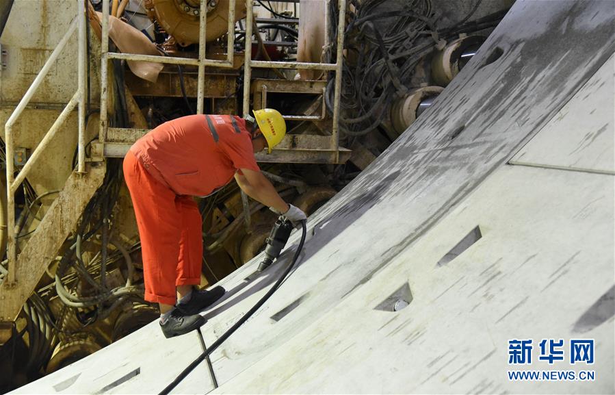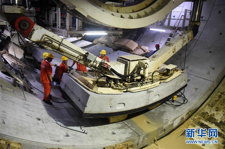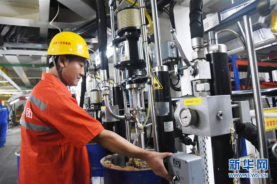 7月29日,“萬里黃河第一隧”——濟南黃河隧道工程施工人員在施工作業。 新華社記者 王凱 攝