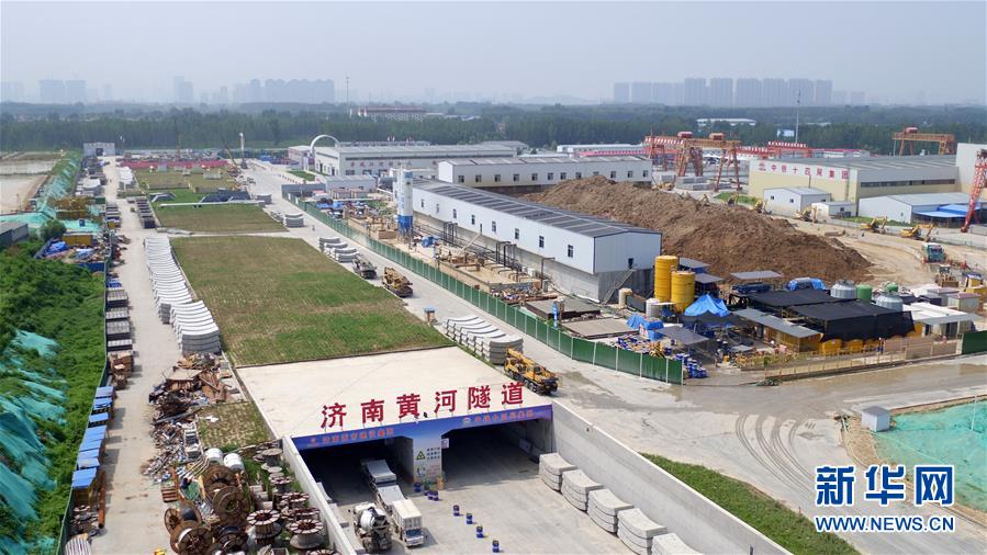 這是7月29日拍攝的“萬里黃河第一隧”——濟南黃河隧道工程施工工地(無人機照片)。 新華社記者 王凱 攝
