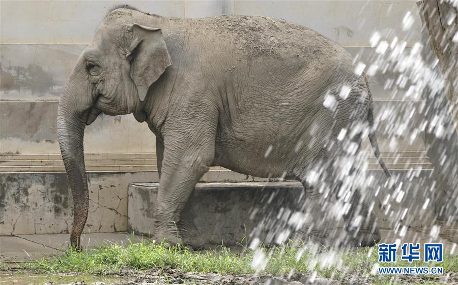 北京動物園的大象在降溫噴淋設(shè)施旁(7月30日攝)。 炎炎夏日,北京動物園根據(jù)動物生活習(xí)性,為動物配備了自動噴淋噴霧、空調(diào)籠舍、恒溫水池、遮陽棚等各類避暑設(shè)施,同時還準(zhǔn)備了西瓜等降溫食品,保障動物平安舒適地度過伏天。 新華社記者李欣攝