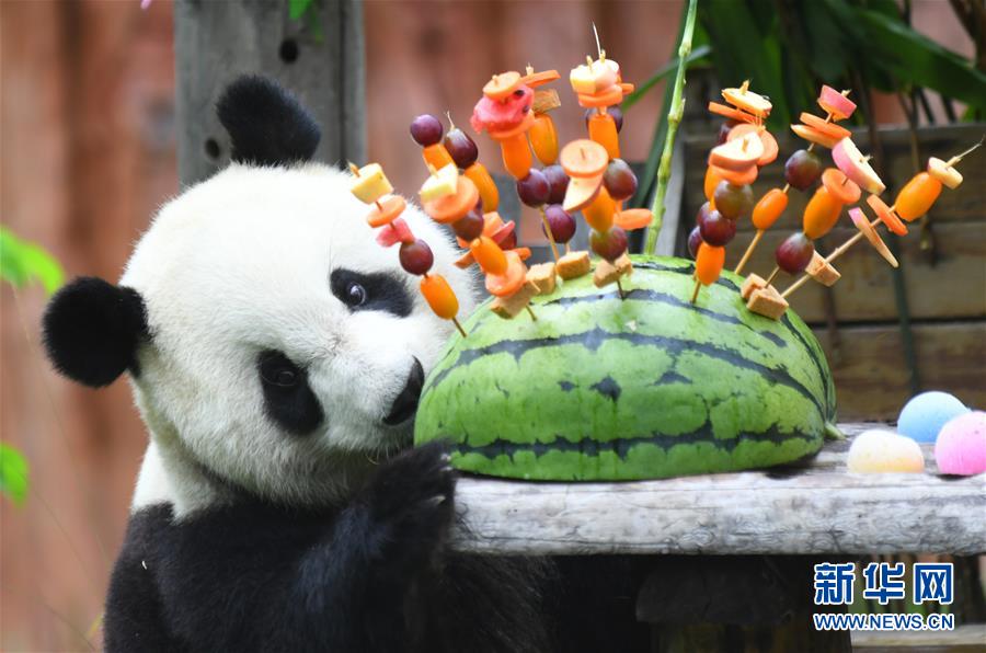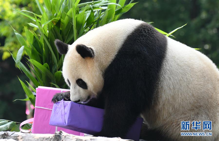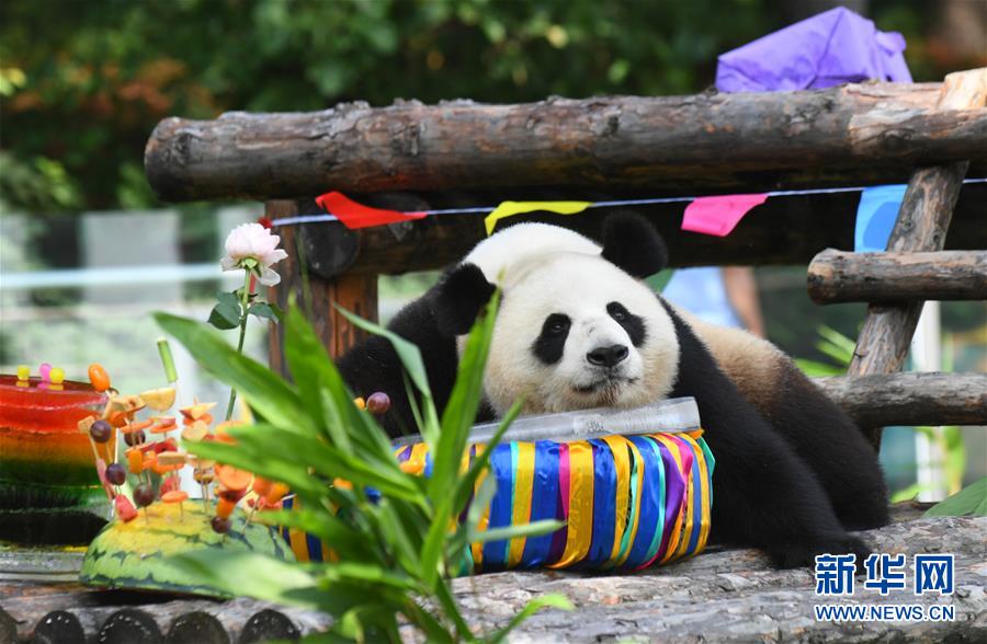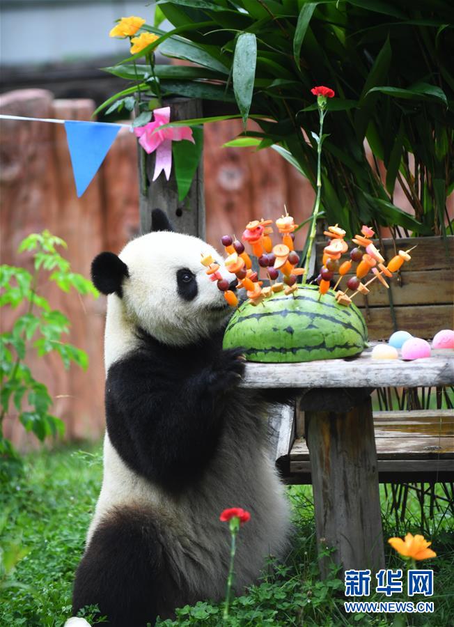 7月30日,大熊貓“初心”準備享用生日禮物。 新華社記者 林宏 攝 |
