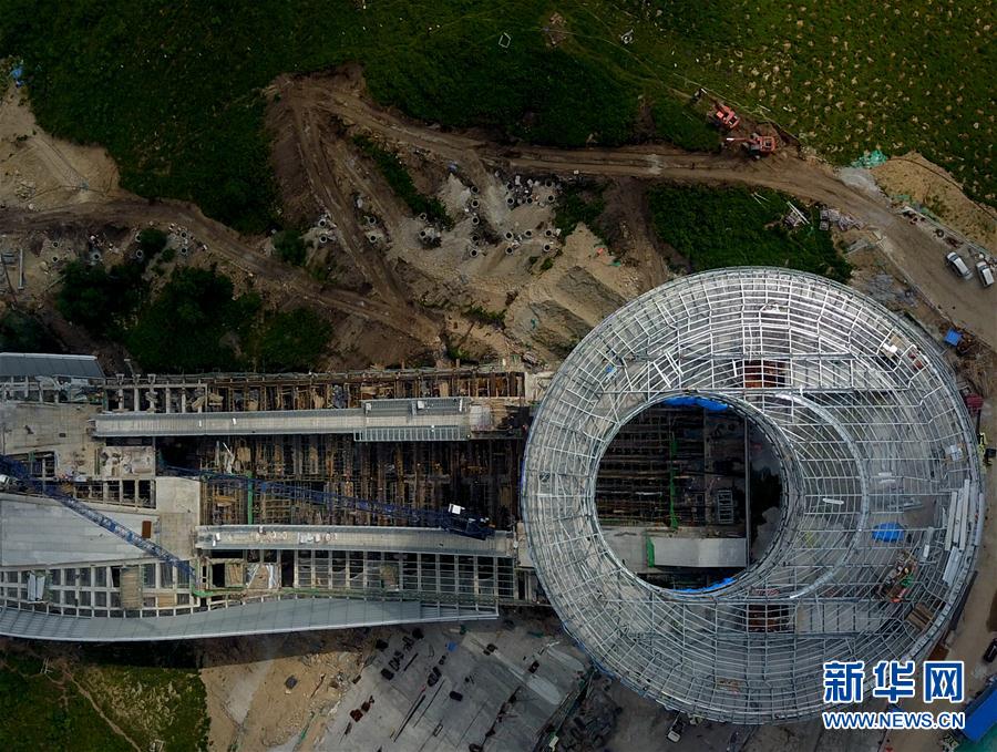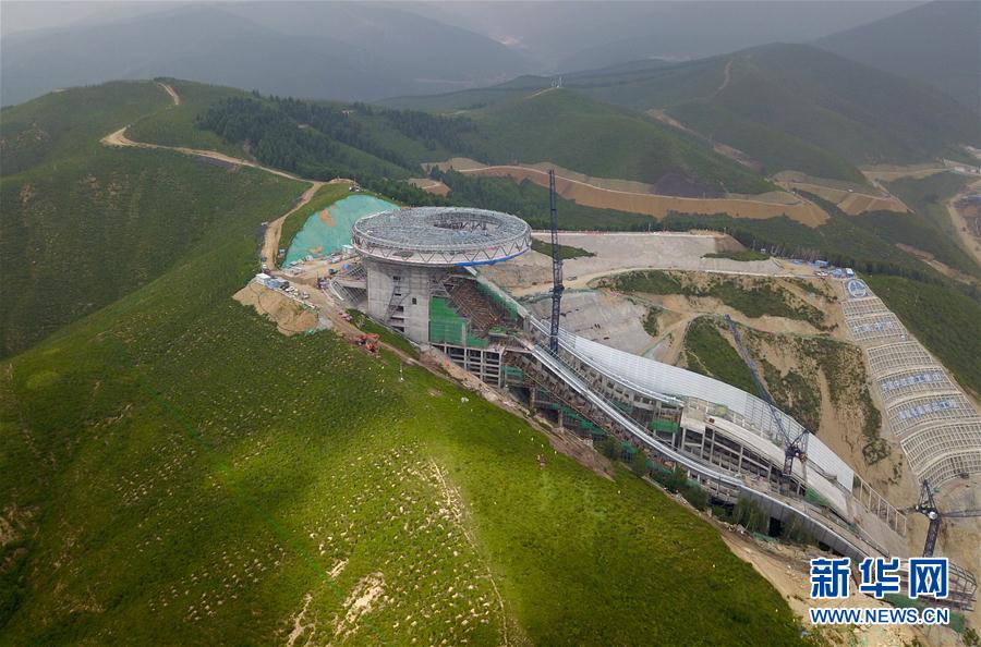 這是位于張家口賽區的國家跳臺滑雪中心(7月30日無人機拍攝)。 在申冬奧成功五周年之際,記者來到北京、延慶和張家口三個賽區,探訪處于建設改造沖刺階段的冬奧場館和設施,近距離了解2022北京冬奧會籌備情況。 新華社記者 張晨霖 攝