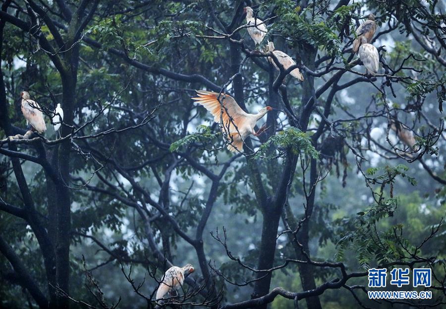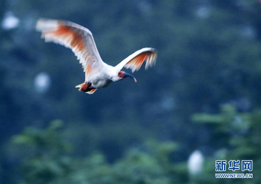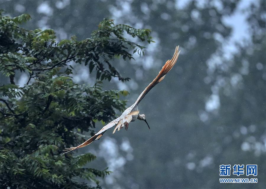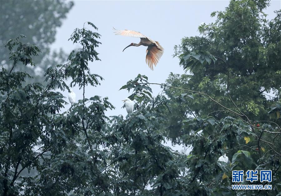 8月1日在洋縣陳家村附近拍攝的朱鹮。 在“朱鹮之鄉”陜西省漢中市洋縣,隨處可見成群結隊的朱鹮在漢江及漢江支流的河灘和濕地覓食、棲息,成為當地的一道風景線。 朱鹮有鳥中“東方寶石”之稱,20世紀中葉瀕臨滅絕。1981年5月23日,世界上僅存的7只野生朱鹮在陜西省漢中市洋縣境內被發現,在隨后日漸完善的保護中,曾幾近滅絕的朱鹮,其全球種群數量已超過5000只,其中中國境內4400只,棲息地呈現出以秦嶺為中心向東亞歷史分布地擴展的趨勢。 新華社記者蘭紅光攝