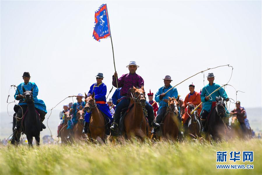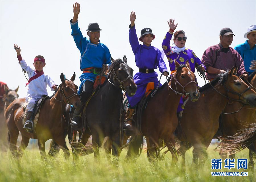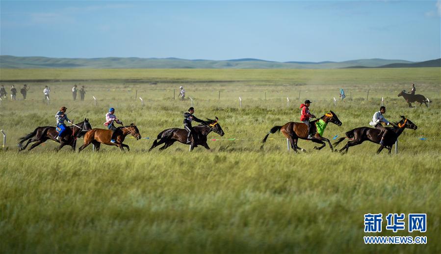8月2日,牧民在開幕式上賽馬。 當日,錫林浩特市游牧文化節·白音錫勒牧場建場70周年那達慕在錫林浩特市白音錫勒牧場拉開帷幕。賽馬、搏克、射箭等蒙古族傳統項目吸引游客前來觀看。 新華社記者 連振 攝