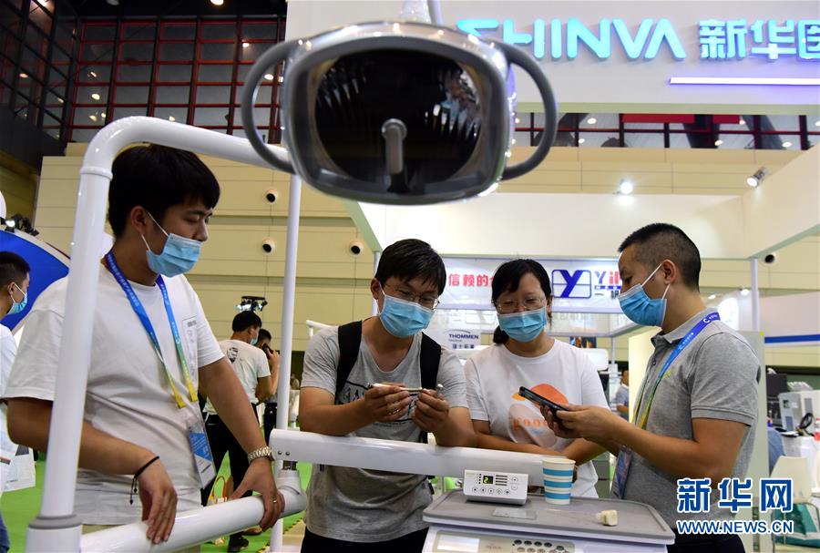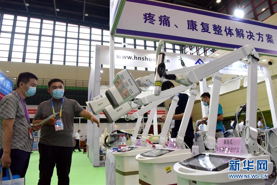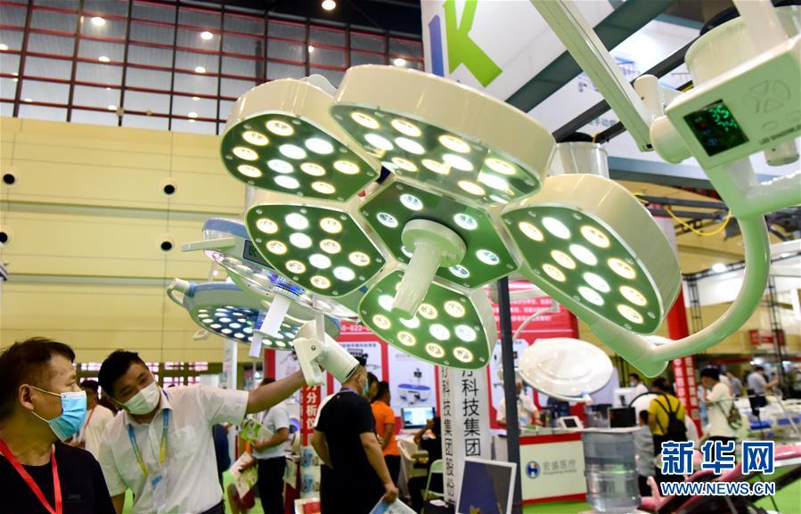 8月4日,觀眾在中原醫療器械展覽會上參觀。 8月3日至5日,中原醫療器械展覽會在河南鄭州舉行,來自全國各地的1000余家醫療器械參展商到會參展。 新華社記者 朱祥 攝