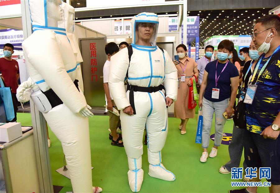 8月4日,參觀者在中原醫療器械展覽會上體驗一款防護服。 8月3日至5日,中原醫療器械展覽會在河南鄭州舉行,來自全國各地的1000余家醫療器械參展商到會參展。 新華社記者 朱祥 攝