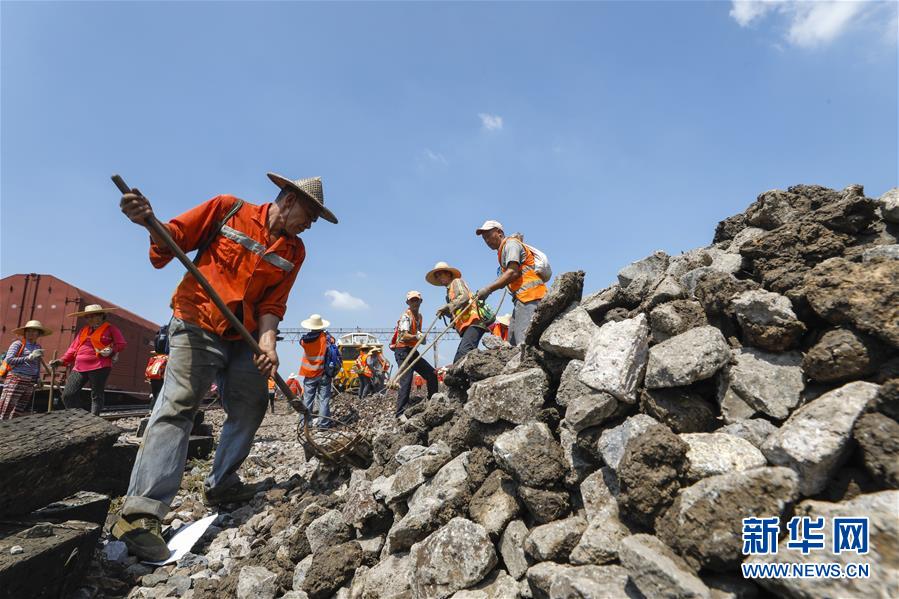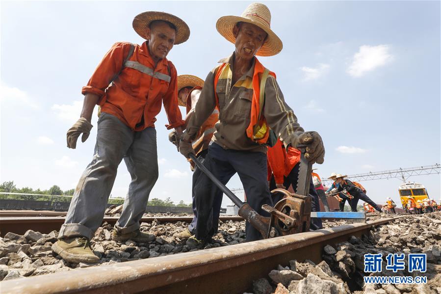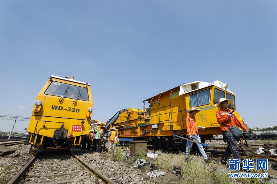 8月4日,鷹潭工務(wù)機(jī)械段的工作人員在江西鷹潭鐵路樞紐編組站施工作業(yè)。 進(jìn)入8月以來(lái),江西持續(xù)高溫天氣。在江西鷹潭鐵路樞紐編組站,鷹潭工務(wù)機(jī)械段的150余名鐵路工人持續(xù)奮戰(zhàn),加緊對(duì)鐵路線路進(jìn)行機(jī)械化養(yǎng)護(hù)作業(yè),江西鷹潭工務(wù)機(jī)械段主要負(fù)責(zé)贛、閩兩省的普速和高速鐵路線的養(yǎng)護(hù)以及維修工作。為確保暑運(yùn)期間農(nóng)耕、生活物資運(yùn)輸安全,鷹潭工務(wù)機(jī)械段利用鐵路運(yùn)輸空窗期對(duì)鷹潭鐵路編組站進(jìn)行為期25天的機(jī)械化清篩施工作業(yè),確保鐵路運(yùn)輸大動(dòng)脈安全暢通。 新華社記者 胡晨歡 攝