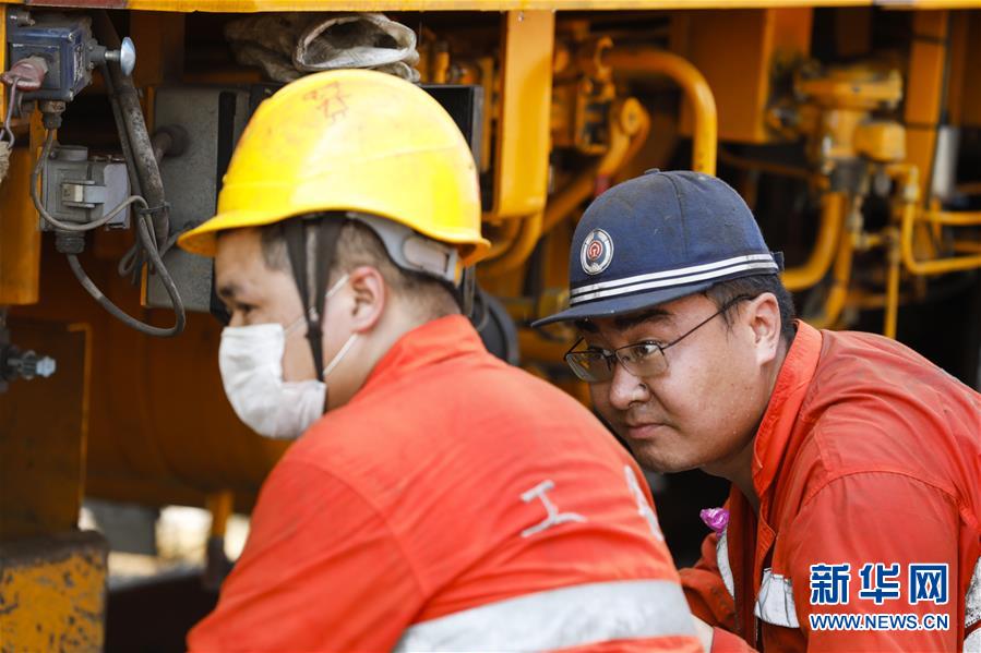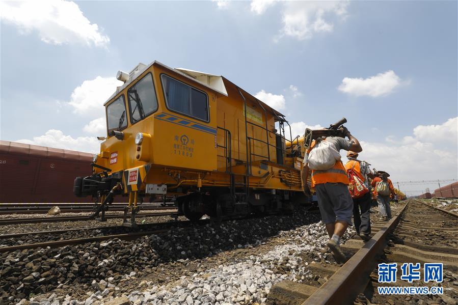 8月4日,鷹潭工務(wù)機(jī)械段的工作人員在檢查維護(hù)鐵軌的機(jī)械設(shè)備。 新華社記者 胡晨歡 攝