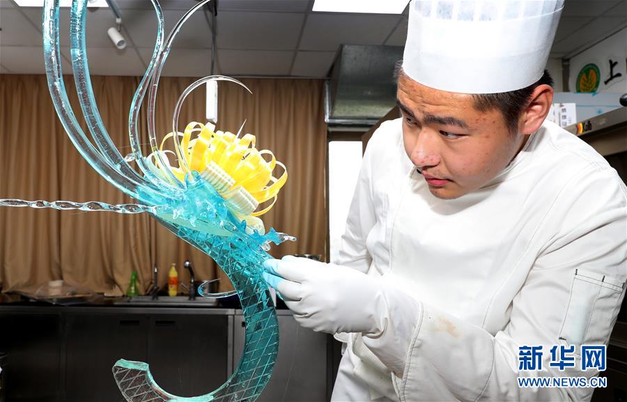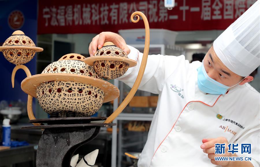 8月5日,糖藝比賽參賽選手在創(chuàng)作中。 當(dāng)日,第二十一屆全國(guó)焙烤職業(yè)技能競(jìng)賽上海賽區(qū)選拔賽,在上海市現(xiàn)代食品職業(yè)技能培訓(xùn)中心舉行,來(lái)自上海、江蘇、浙江等地的近60名焙烤行業(yè)技師,在藝術(shù)面包、傳統(tǒng)糕點(diǎn)、糖藝和藝術(shù)巧克力等項(xiàng)目中進(jìn)行比拼,在充滿焙烤香氣的賽場(chǎng)上展現(xiàn)技藝。 新華社記者方喆攝