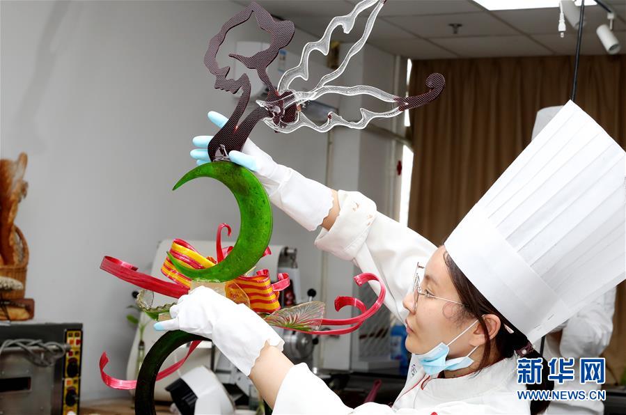 8月5日,參賽選手在創(chuàng)作航天主題的藝術(shù)面包。 當(dāng)日,第二十一屆全國(guó)焙烤職業(yè)技能競(jìng)賽上海賽區(qū)選拔賽,在上海市現(xiàn)代食品職業(yè)技能培訓(xùn)中心舉行,來(lái)自上海、江蘇、浙江等地的近60名焙烤行業(yè)技師,在藝術(shù)面包、傳統(tǒng)糕點(diǎn)、糖藝和藝術(shù)巧克力等項(xiàng)目中進(jìn)行比拼,在充滿焙烤香氣的賽場(chǎng)上展現(xiàn)技藝。 新華社記者方喆攝