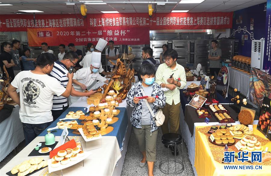 8月5日,觀眾在展示區(qū)觀看參賽選手的作品。 當(dāng)日,第二十一屆全國(guó)焙烤職業(yè)技能競(jìng)賽上海賽區(qū)選拔賽,在上海市現(xiàn)代食品職業(yè)技能培訓(xùn)中心舉行,來(lái)自上海、江蘇、浙江等地的近60名焙烤行業(yè)技師,在藝術(shù)面包、傳統(tǒng)糕點(diǎn)、糖藝和藝術(shù)巧克力等項(xiàng)目中進(jìn)行比拼,在充滿焙烤香氣的賽場(chǎng)上展現(xiàn)技藝。 新華社記者方喆攝