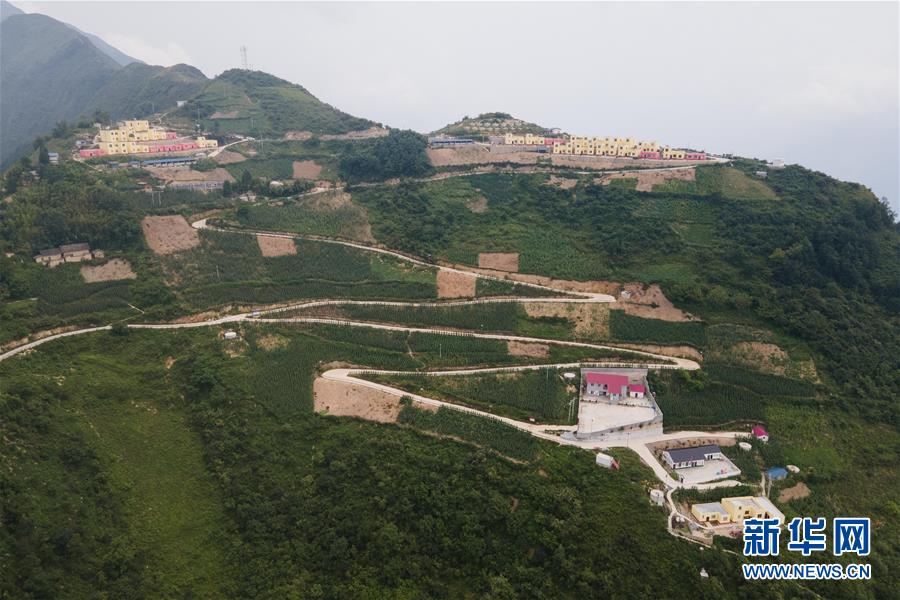 雷波縣大坪子鄉大坪子村的一處易地扶貧搬遷集中安置點(8月7日攝,無人機照片)。 新華社記者 胥冰潔 攝