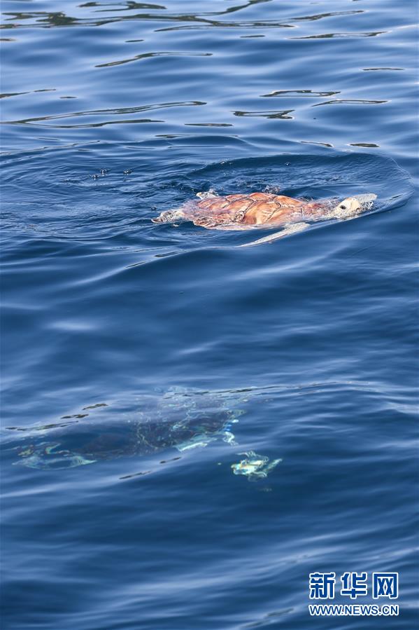 8月9日,在海南陵水縣分界洲島附近海域,一只被放生的海龜在海里暢游。 當日,2020年南海海龜放流活動在海南省陵水黎族自治縣分界洲島附近海域舉行,99只救治康復(fù)海龜被放歸大海。 據(jù)了解,本次放歸的99只海龜,分別來自執(zhí)法機關(guān)罰沒和誤捕擱淺救助,均已經(jīng)過專業(yè)機構(gòu)妥善救治和野化訓練,具備野外生存能力,其中10只海龜放置了定位追蹤芯片,通過追蹤海龜?shù)匿в温窂剑私夂}斏盍曅约皸⒌厣鷳B(tài)環(huán)境。 新華社記者 張麗蕓 攝