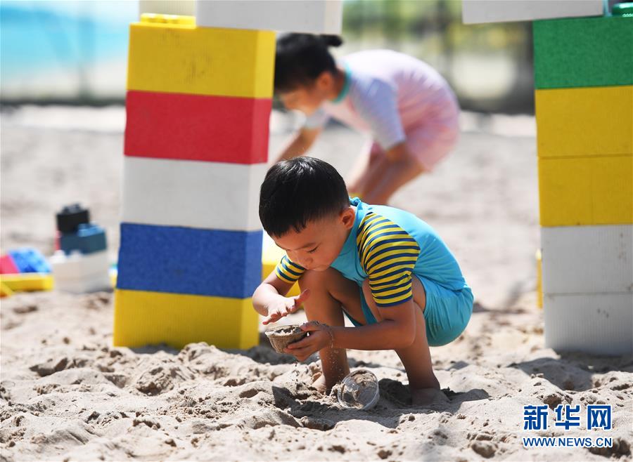 8月9日,小朋友在南宮五洲植物樂園戶外戲水區(qū)旁的沙灘上玩沙子。 近期,在做好新冠肺炎疫情防控的前提下,位于北京市豐臺區(qū)的南宮五洲植物樂園戶外戲水區(qū)對外開放。市民在戲水的同時還可以在沙灘上畫沙畫、在新游樂項目“叢林網(wǎng)繩”里穿梭跳躍,豐富暑期生活。 新華社記者 任超 攝