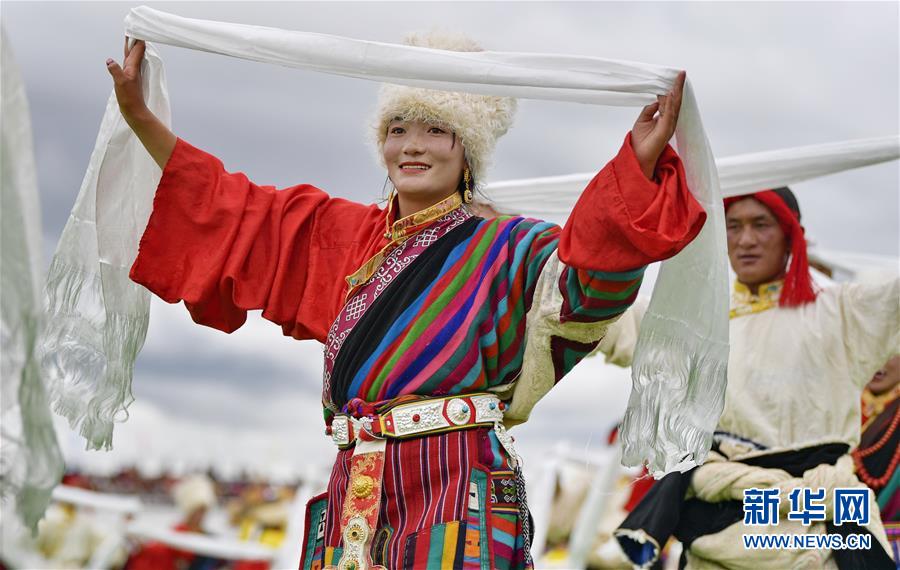 8月10日,演員在2020年那曲羌塘恰青格薩爾賽馬藝術(shù)節(jié)開幕式上表演節(jié)目。 當(dāng)日,2020年那曲羌塘恰青格薩爾賽馬藝術(shù)節(jié)在西藏那曲市格薩爾賽馬場開幕。 新華社記者 張汝鋒 攝