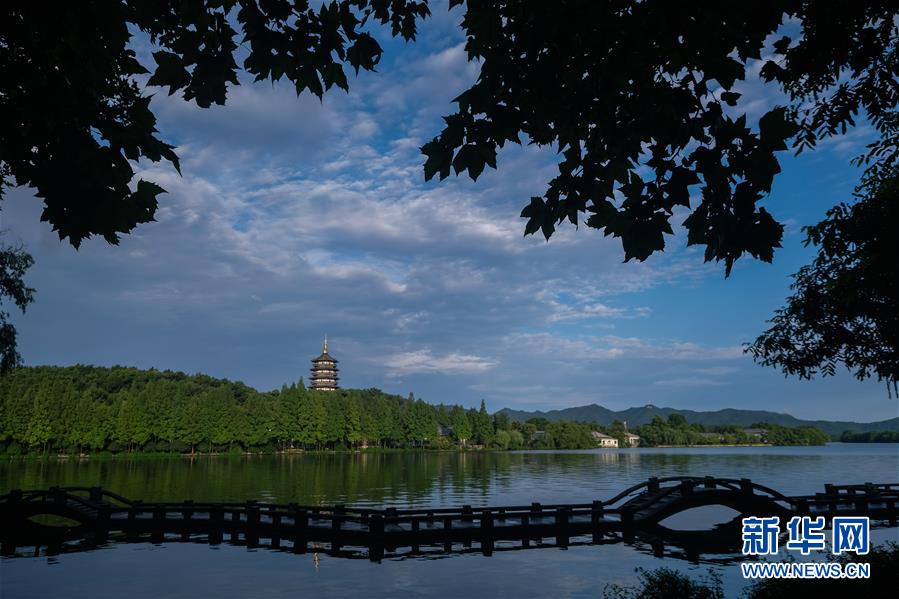晨曦中的杭州西湖景區(qū),雷峰塔沐浴在晨光中(7月7日攝)。 新華社記者 徐昱 攝