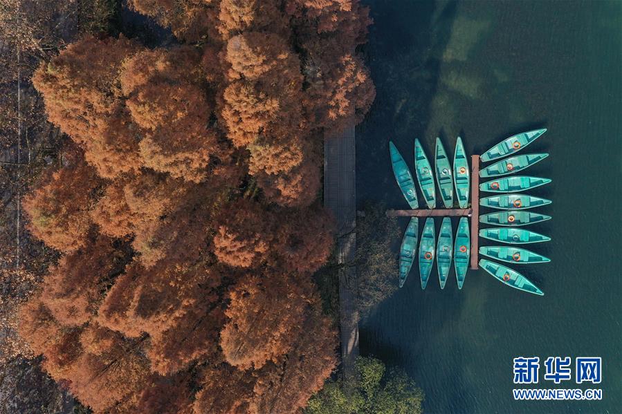 杭州西湖景區楊公堤附近的景色(2019年12月13日攝,無人機照片)。 新華社記者 黃宗治 攝
