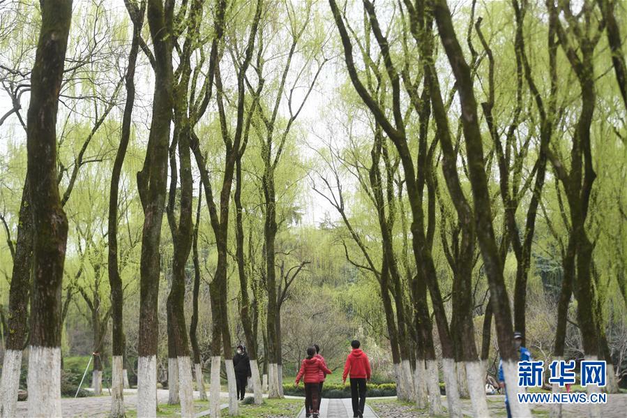 游人在杭州西湖景區柳浪聞鶯公園內游覽(3月12日攝)。 新華社記者 黃宗治 攝