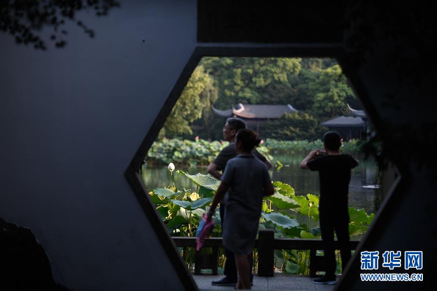 游客在杭州西湖曲院風荷景區觀賞荷花(6月30日攝)。 新華社記者 黃宗治 攝