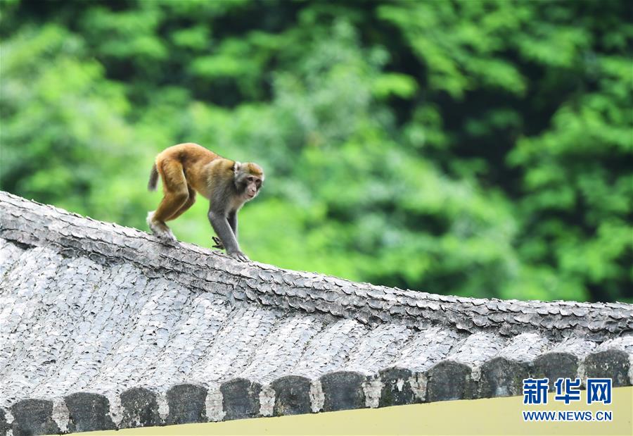 這是8月11日拍攝的溫塘河岸邊的野生獼猴。 近年來,位于重慶市渝北區統景鎮的溫塘河兩岸植被不斷優化,生態環境持續改善,吸引越來越多的野生獼猴聚集于此。 新華社記者王全超攝