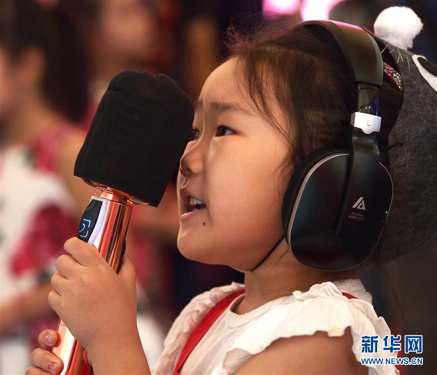 8月12日,一名小讀者在2020上海書展“陳伯吹童書屋”里朗讀繪本。新華社記者 任瓏 攝