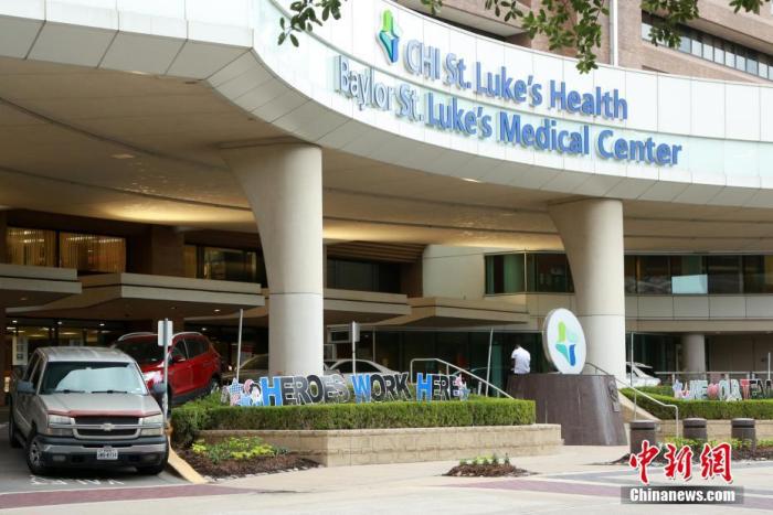 資料圖:當地時間6月24日,美國休斯敦,得州醫學中心會員單位——貝勒圣盧克醫療中心門口插著彩色字母牌“英雄們在此工作”。 中新社記者 曾靜寧 攝