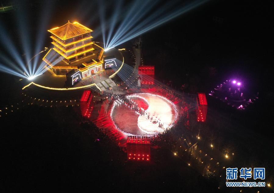 這是12月17日在河南省焦作市溫縣陳家溝拍攝的太極拳申遺成功慶祝儀式現場(無人機照片)。新華社記者 李嘉南 攝