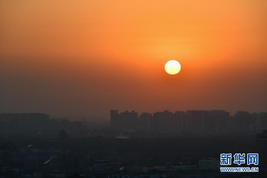 這是2021年1月1日在北京宣武門(mén)拍攝的日出。當(dāng)日是新年第一天,朝陽(yáng)升起,萬(wàn)象更新。新華社記者 李鑫 攝