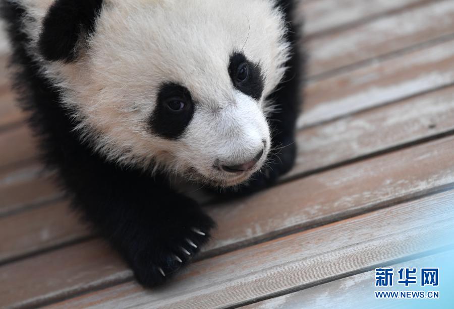 1月22日,大熊貓幼崽在陜西秦嶺大熊貓研究中心活動(dòng)。