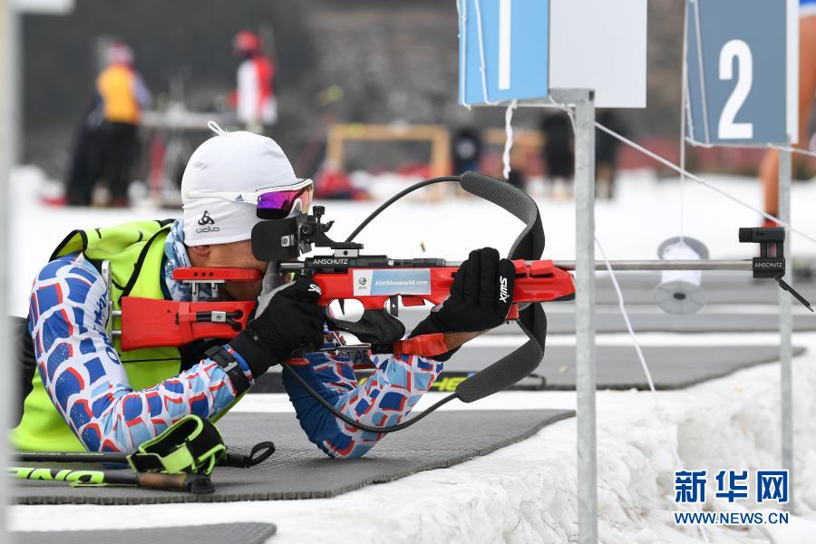 1月27日,內蒙古自治區冬季運動管理中心冬季兩項運動員包寶才在訓練中射擊。