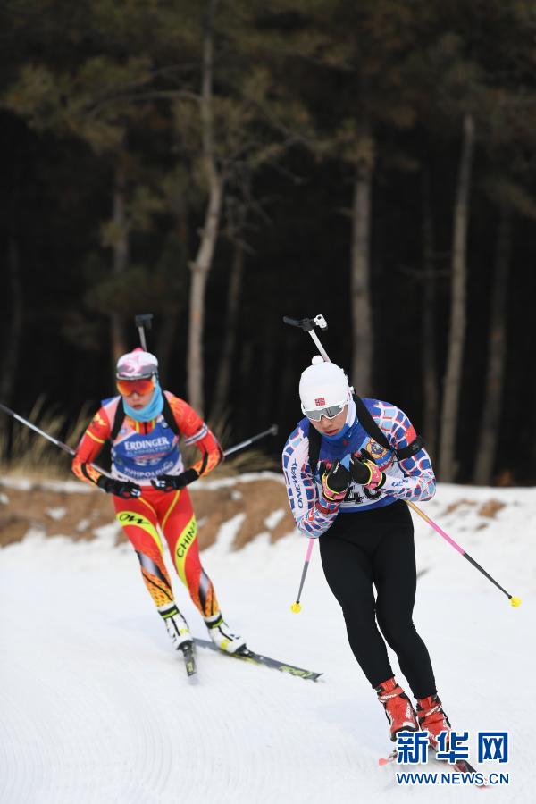 1月27日,內蒙古自治區冬季運動管理中心冬季兩項運動員楊鵬(右)在訓練中。 近日,在做好疫情防控的前提下,內蒙古自治區冬季運動管理中心冬季兩項隊在位于內蒙古自治區烏蘭察布市涼城縣的岱海國際滑雪場越野滑雪場地進行訓練。 新華社記者 貝赫 攝 |