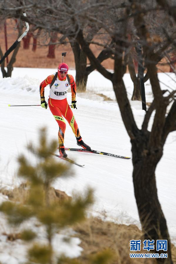 1月27日,內蒙古自治區冬季運動管理中心冬季兩項運動員高翔在訓練中。 近日,在做好疫情防控的前提下,內蒙古自治區冬季運動管理中心冬季兩項隊在位于內蒙古自治區烏蘭察布市涼城縣的岱海國際滑雪場越野滑雪場地進行訓練。 新華社記者 貝赫 攝