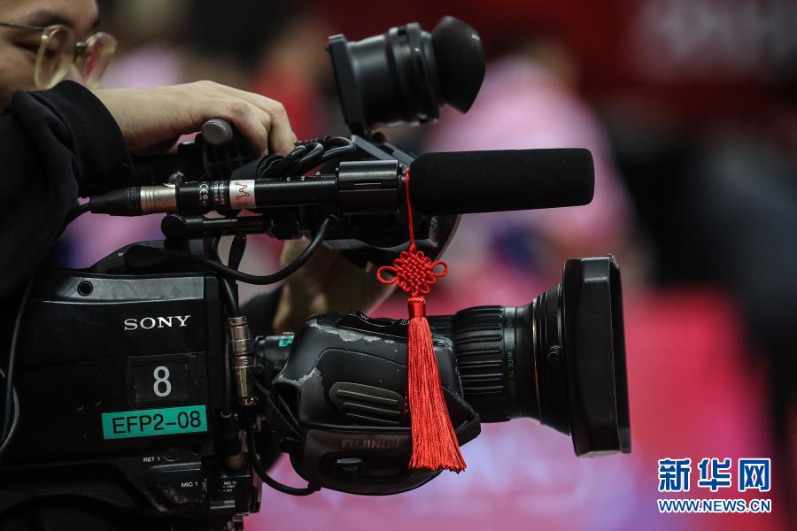 2月1日,在CBA第二階段第37輪新疆伊力特隊對陣山西汾酒股份隊的比賽中,一臺轉播比賽的攝像機掛上了中國結飾品。 隨著農歷春節的臨近,中國男子籃球職業聯賽(CBA)賽場內的各處布置也換上“新裝”,節日氣氛日漸變濃。 新華社記者 潘昱龍 攝