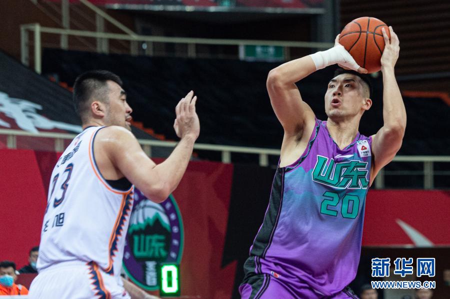3月1日,山東西王隊(duì)球員陶漢林(右)投籃。 當(dāng)日,在浙江諸暨進(jìn)行的2020-2021賽季中國(guó)男子籃球職業(yè)聯(lián)賽(CBA)第三階段第40輪比賽中,上海久事隊(duì)以120比114戰(zhàn)勝山東西王隊(duì)。 新華社記者 江漢 攝 |
