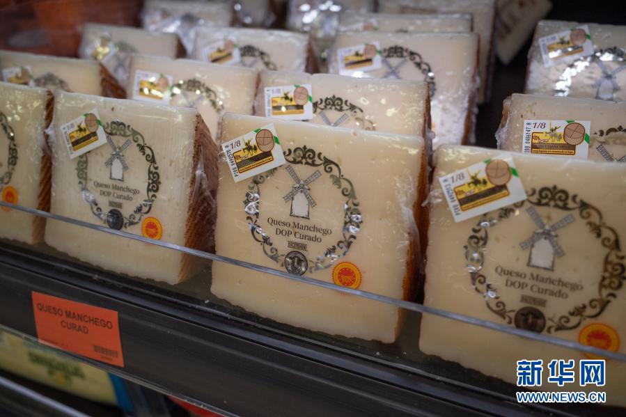 這是3月2日在西班牙馬德里拍攝的蒙切哥乳酪。西班牙的蒙切哥乳酪是中歐地理標志協定中首批受保護的歐盟地理標志產品。 中歐地理標志協定3月1日起生效。首批“上榜”的中歐各100個地理標志即日起受到保護,這意味著中國和歐盟的更多特色優質名品將進入彼此市場,不僅將更好保護中歐企業權益,也會讓雙方消費者買得放心。 新華社記者 孟鼎博 攝