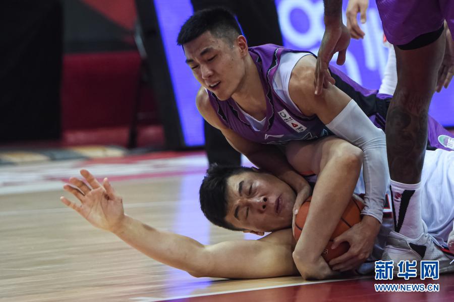 3月10日,山東西王隊球員高詩巖(上)與廣東東莞大益隊球員蘇偉在比賽中爭搶球權。 當日,在浙江諸暨舉行的2020-2021賽季中國男子籃球職業聯賽(CBA)第三階段第44輪比賽中,廣東東莞大益隊以104比90戰勝山東西王隊。 新華社記者 江漢 攝