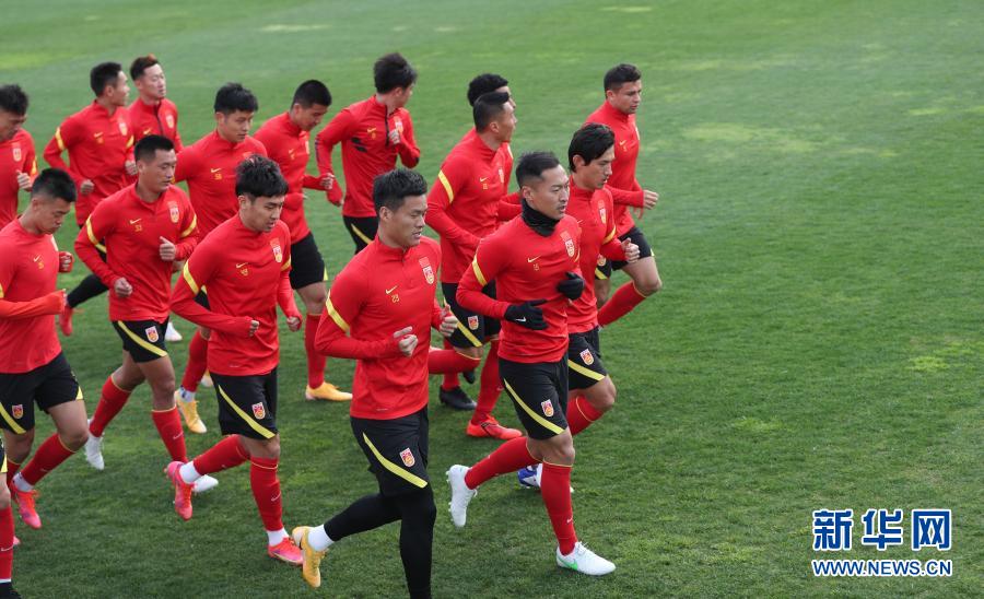 3月21日,國(guó)足球員在訓(xùn)練中。