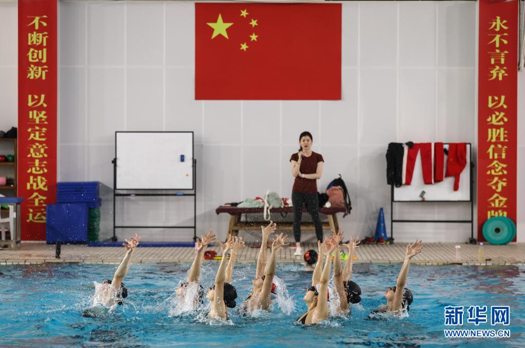 這是江蘇省花樣游泳隊的隊員們在南京體育學院內訓練(3月29日攝)。
