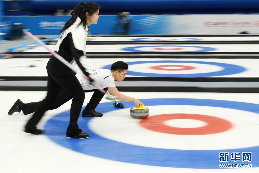 4月1日,運動員在冰壺項目測試活動中。 當日,“相約北京”冰上項目測試活動啟動。此次冰上項目測試活動共有七項賽事,包含五個冬奧項目,兩個冬殘奧項目,將分別在國家游泳中心、國家體育館、國家速滑館,首都體育館、五棵松體育中心五個競賽場館舉行。 新華社記者 鞠煥宗 攝