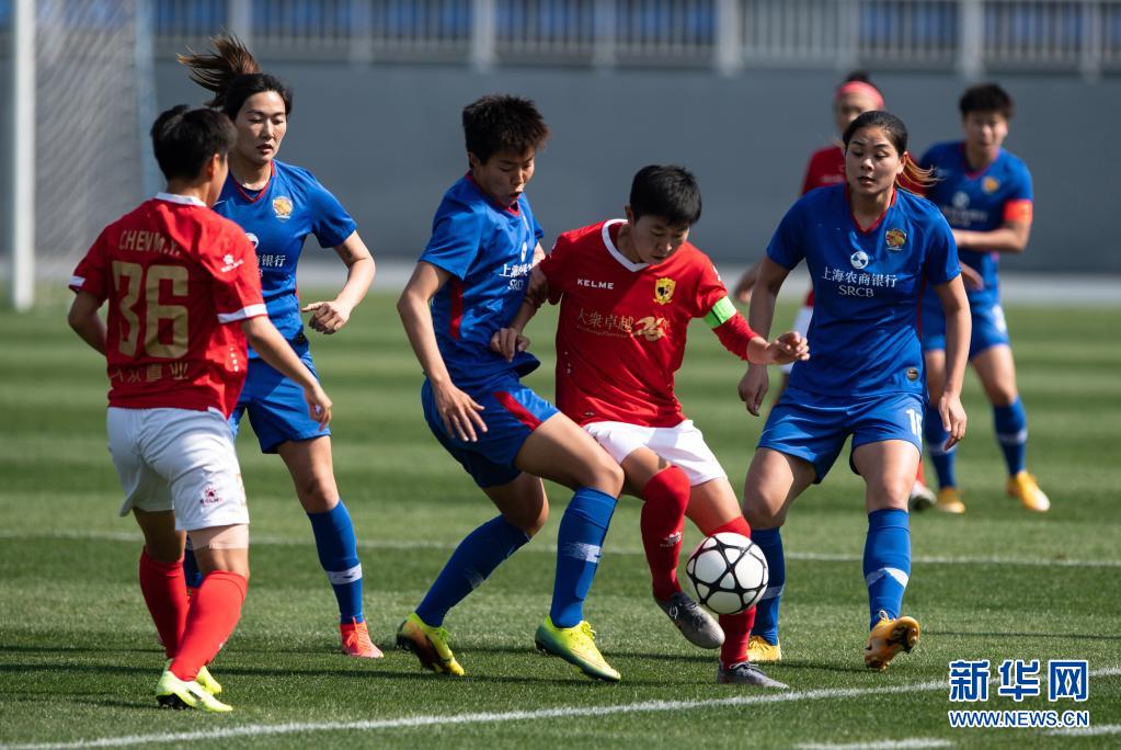 4月7日,長春大眾置業(yè)隊球員李雯(左四)在比賽中拼搶。 當日,在昆明舉行的2021年中國足球協(xié)會全國女子足球錦標賽決賽中,長春大眾置業(yè)隊在常規(guī)時間內(nèi)以1比1戰(zhàn)平上海農(nóng)商銀行隊,最終在點球大戰(zhàn)中以4比1(總比分5比2)戰(zhàn)勝對手,獲得冠軍。 新華社記者 王冠森 攝