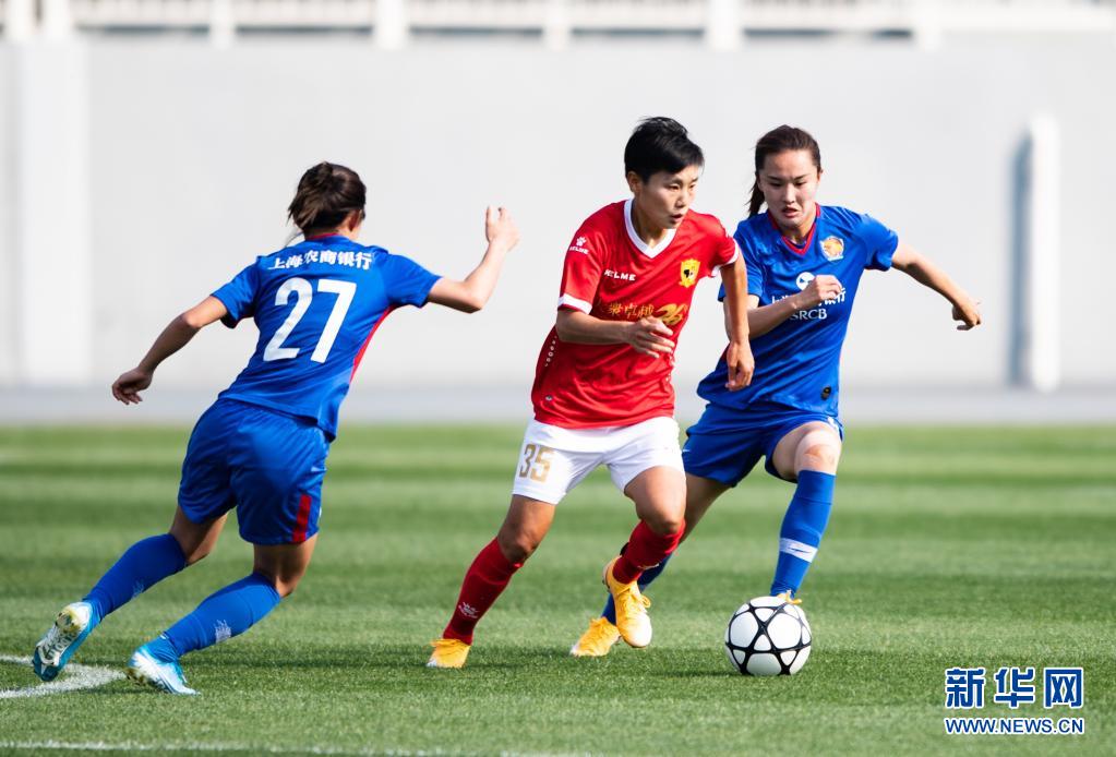 4月7日,長春大眾置業(yè)隊球員高晨(中)帶球突破。 當日,在昆明舉行的2021年中國足球協(xié)會全國女子足球錦標賽決賽中,長春大眾置業(yè)隊在常規(guī)時間內(nèi)以1比1戰(zhàn)平上海農(nóng)商銀行隊,最終在點球大戰(zhàn)中以4比1(總比分5比2)戰(zhàn)勝對手,獲得冠軍。 新華社記者 王冠森 攝