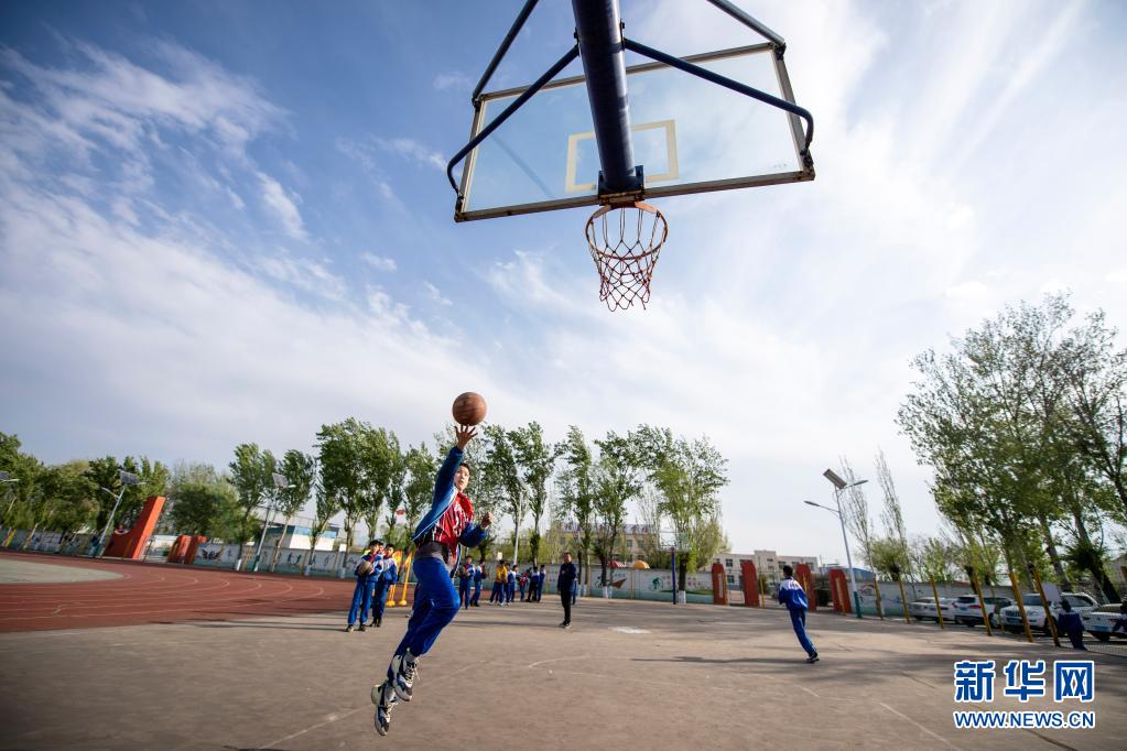 朝陽學校的學生們在課間進行籃球訓練(4月13日攝)。新華社記者 詹彥 攝