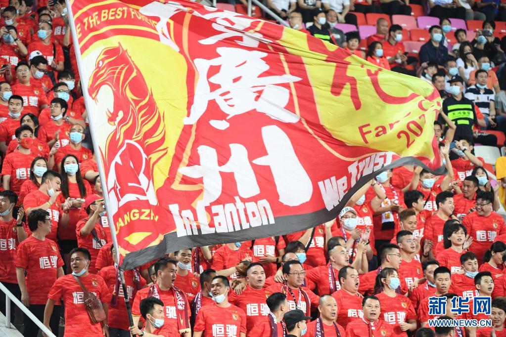 4月20日,廣州隊球迷在賽前為球隊吶喊助威。