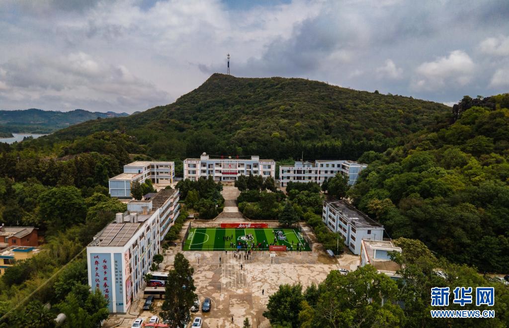 這是4月28日拍攝的建成在石林彝族自治縣長湖鎮維則青聯希望小學的首個中國女足主題球場(無人機照片)。 當日,首個中國女足主題球場在云南省昆明市石林彝族自治縣長湖鎮維則青聯希望小學建成啟用。 新華社記者 王冠森 攝