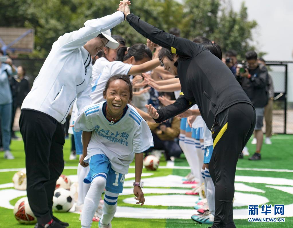 當日,首個中國女足主題球場在云南省昆明市石林彝族自治縣長湖鎮維則青聯希望小學建成啟用。