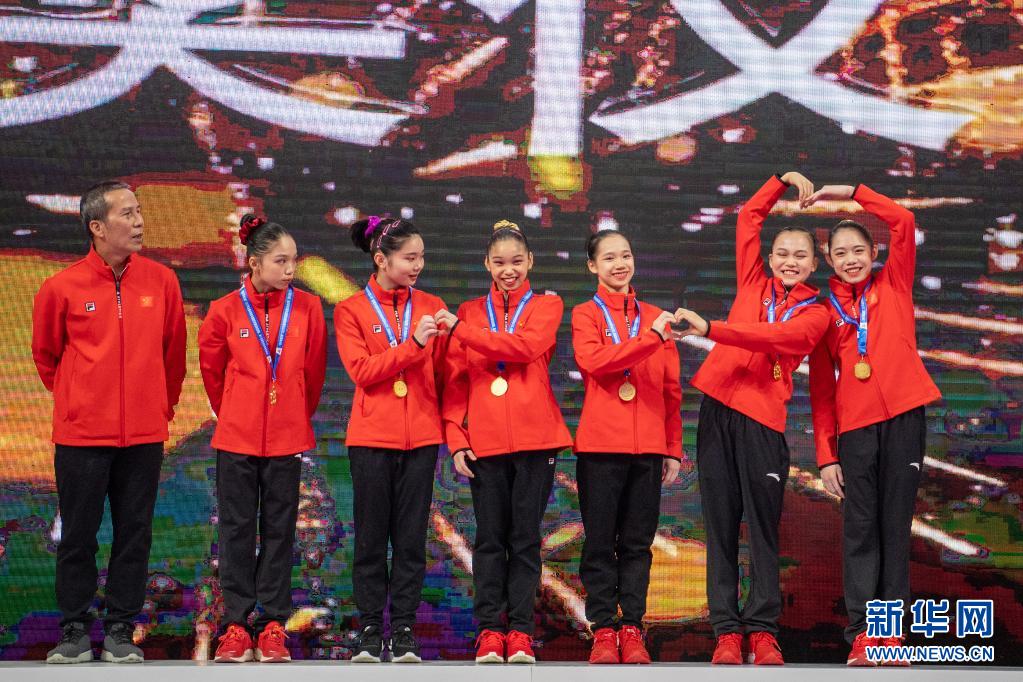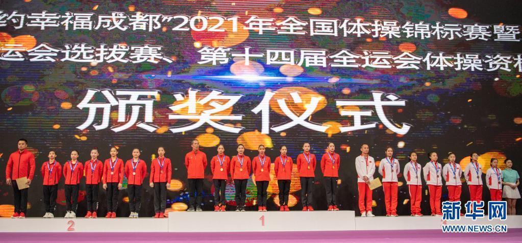 5月5日,廣東隊(duì)(中)、北京隊(duì)(左)、浙江隊(duì)在頒獎儀式上。 當(dāng)日,2021年全國體操錦標(biāo)賽暨東京奧運(yùn)會選拔賽、第十四屆全運(yùn)會體操資格賽女子團(tuán)體賽在四川成都舉行。廣東隊(duì)、北京隊(duì)、浙江隊(duì)分別以222.428、216.061、214.695分的成績獲得女子團(tuán)體一、二、三名。 新華社記者 胥冰潔 攝
