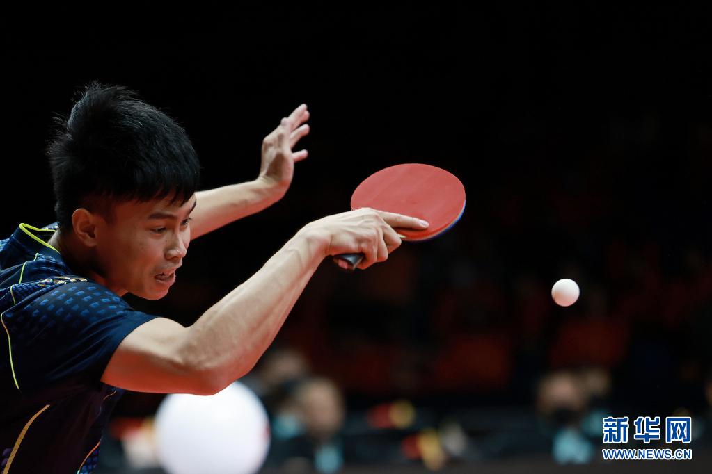 5月7日,周啟豪在比賽中回球。 當日,在河南省新鄉市舉行的2021“直通WTT大滿貫·世乒賽”暨奧運模擬賽男子單打決賽中,周啟豪以4比2戰勝樊振東,奪得冠軍。 新華社記者 許雅楠 攝 |