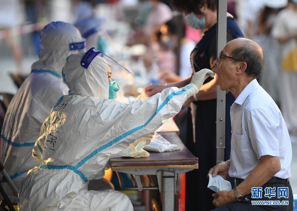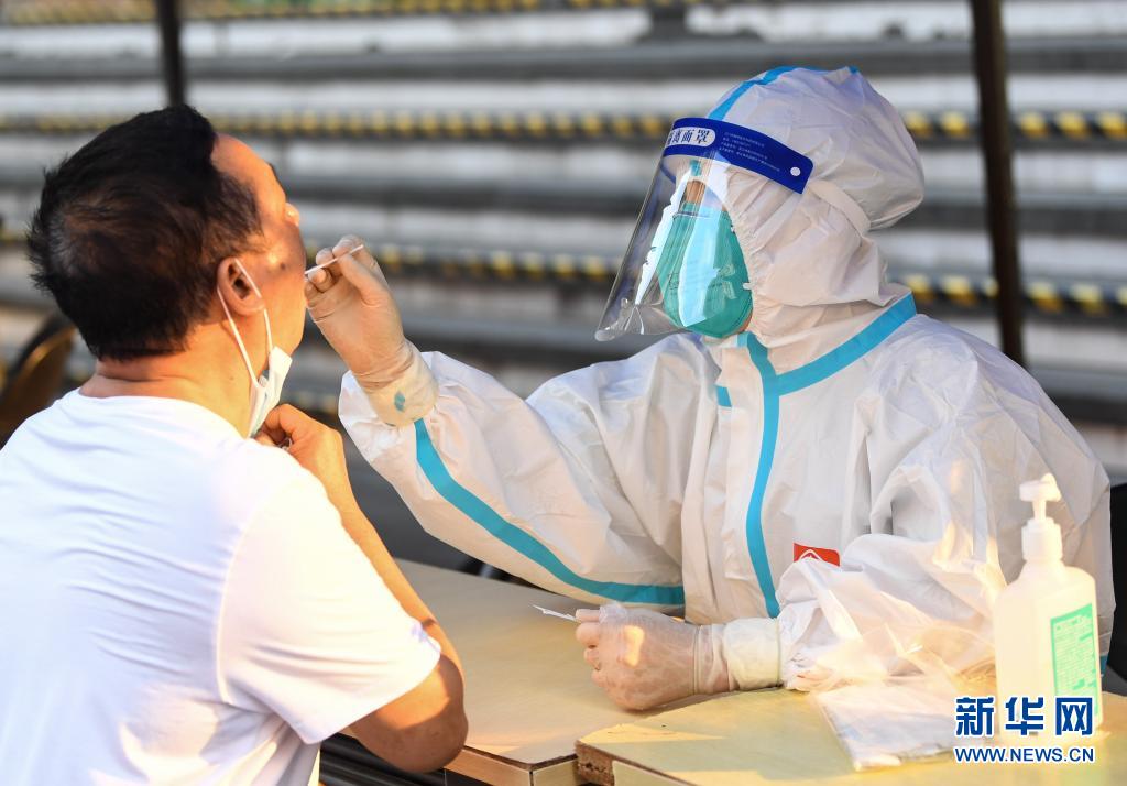 6月8日,在廣州荔灣區白鶴洞街廣鋼新城,醫務人員進行核酸檢測采樣。 當日,廣州對高風險地區白鶴洞街、中南街開展新一輪全員核酸檢測。據廣州市衛生健康委8日通報,5月26日啟動核酸大排查以來,截至6月7日24時,廣州全市累計核酸采樣2798.55萬份,共發現陽性40人。 新華社記者 鄧華 攝