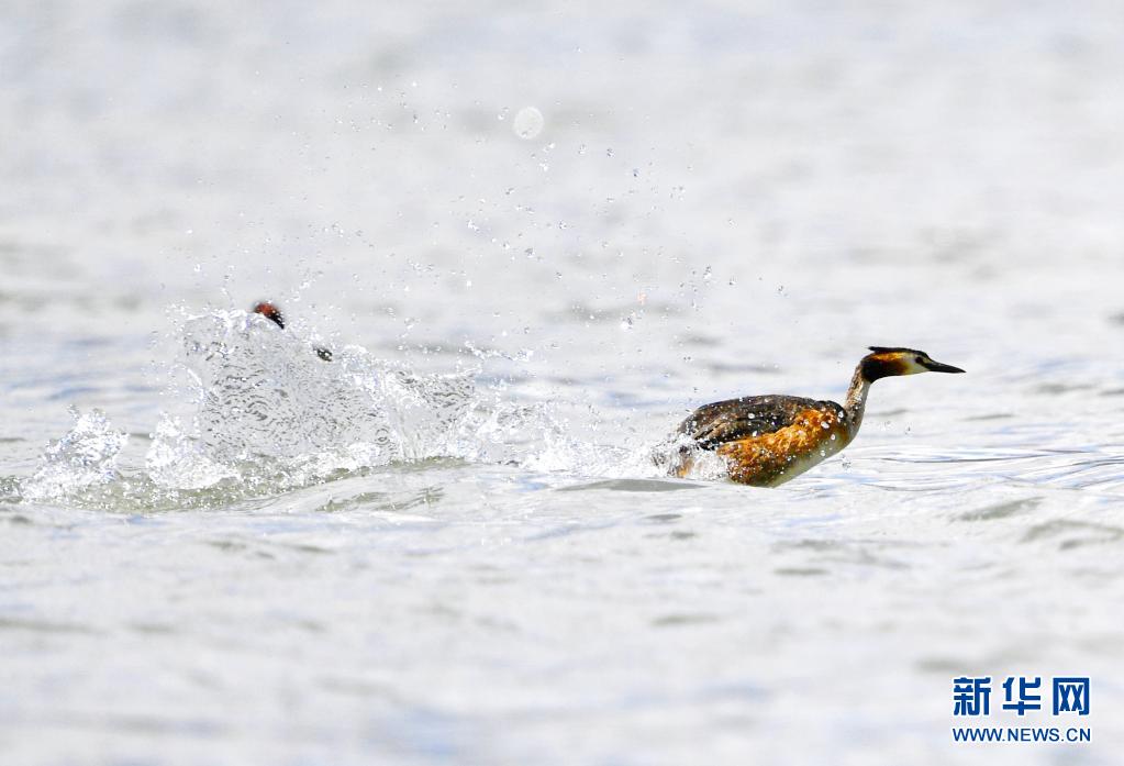 6月14日在拉魯濕地拍攝的鳳頭 。夏日里,鳳頭 和小 在西藏拉薩拉魯濕地國家級自然保護區水面上嬉戲。新華社記者 張汝鋒 攝 |